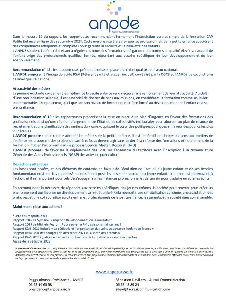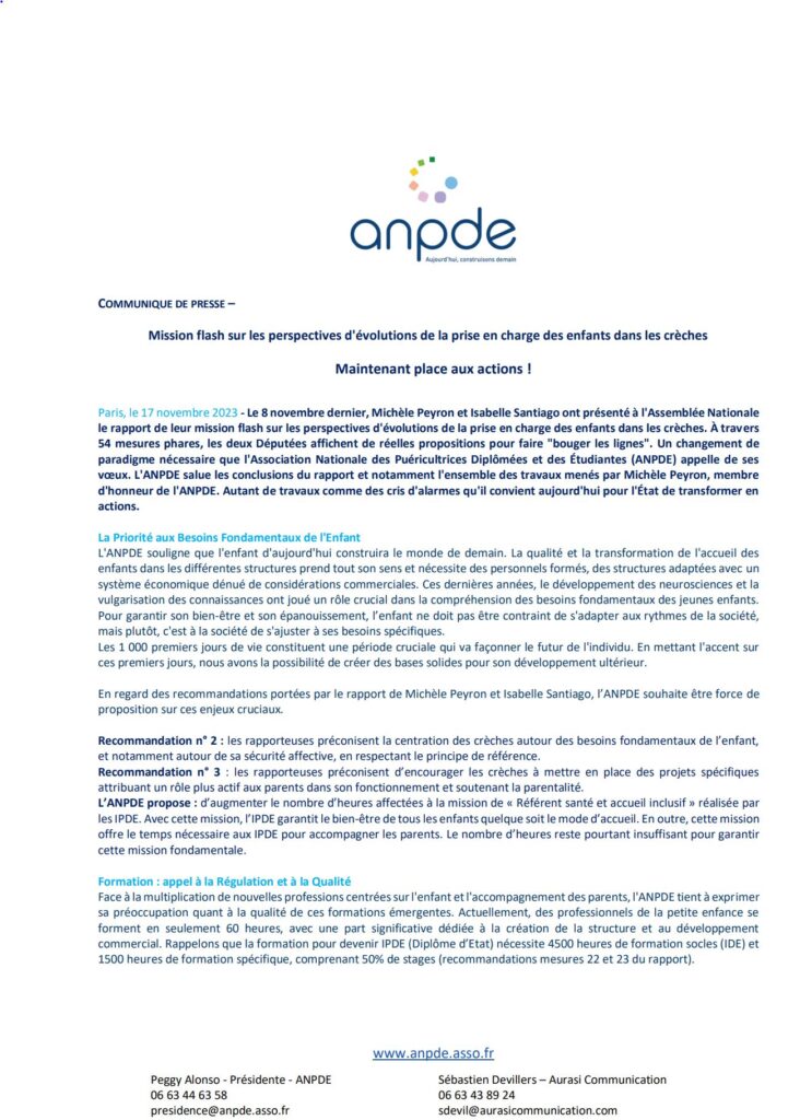 Mission flash sur les perspectives d’évolutions de la prise en charge des enfants dans les crèches
